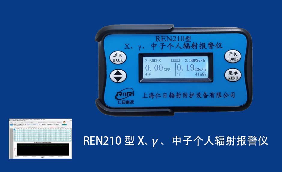 REN210 個人劑量報警儀REN210型X、γ、中子個人輻射報警儀內置SiPM和鋰玻璃晶體組成中子探測器儀器,采用反照率方式探測中子射線,同時也能探測X、γ射線。因此它可同事監檢測X、γ、中子三種射線。能顯示工作場所的劑量當量率和累積劑量,更換電池時,日期及累積數據能永久保存。可選配RenRiPersonal個人劑量管理軟件,該軟件可存儲多個人的歷史數據,能記錄日累積、月累積、年累積、輻照時長、計算平均劑量率、扣除或不扣除本底輻射,且以文字和圖譜的方式展現數據。廣泛應用于環保、化工、水泥、煤礦、土木工程、石油、醫院、疾控、進出口商檢、核電、加速器、機場、中子源庫和其他安檢、邊境控制海關檢測等
